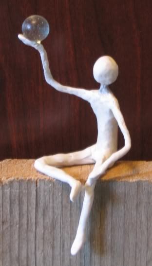 Okay, I have cured the problem of the short legs on the figure. It was actually not as hard as I feared. What I did was removed the clay up to the waist, bent the waist a little to make the torso shorter and use more of the leg area for legs, then extended one ankle (the one that is bent) just to make it look a little better and reinforce the clay where it would be bent.