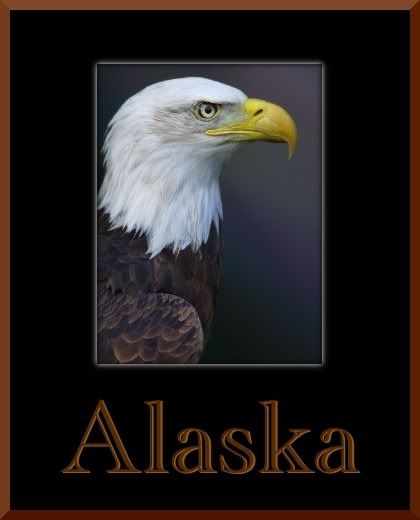 I left the eagle as is, since he is just impossible to make any improvements on, and added a nice basic black base with Alaska and a border in brown. This is, as I said, just a basic patch pattern that I am playing around with. And it's also not configured for being resizable, when I get through playing and start making actual travel patches, then I will create them in a larger size and save them to one of my main websites for download.